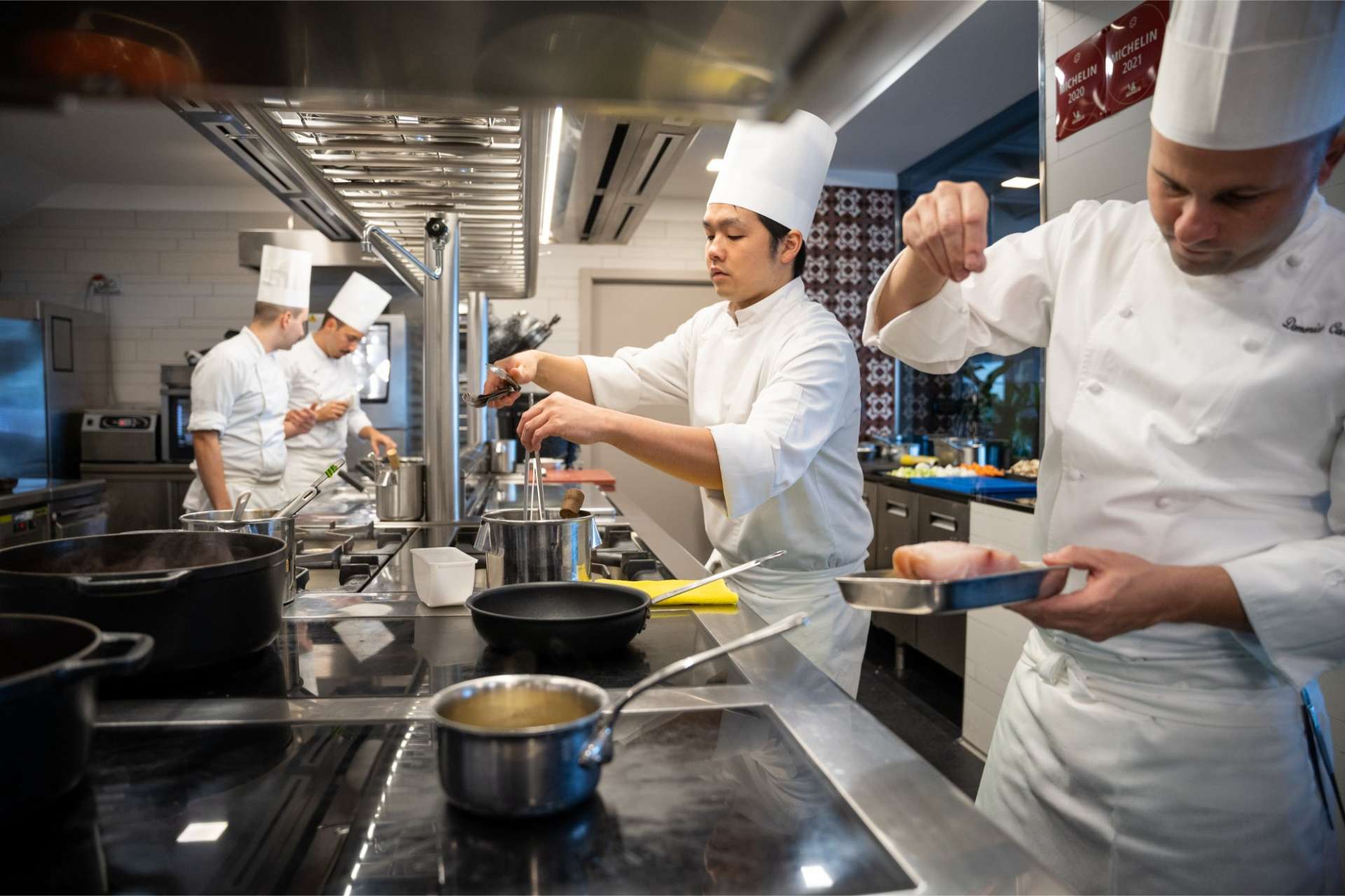 “Ricordare per me significa riportare nel cuore i momenti dell’infanzia e ritrovarli nella studiata alchimia dei sapori, degli odori, dei colori che sono nei miei piatti. Dopo essere stato accolto in Francia, patria di formazione, riapprodo nella mia città con grande orgoglio a coniugare l’emozione e la memoria con la disciplina e il rigore della raffinatezza. Porto in tavola le mie scelte, i prodotti di territori d’elezione, l’amore per le salse, l’autenticità del pomodoro che si unisce all’esaltante profumo di basilico. Porto in tavola il mio viaggio quotidiano nel mondo dell’arte gastronomica”.